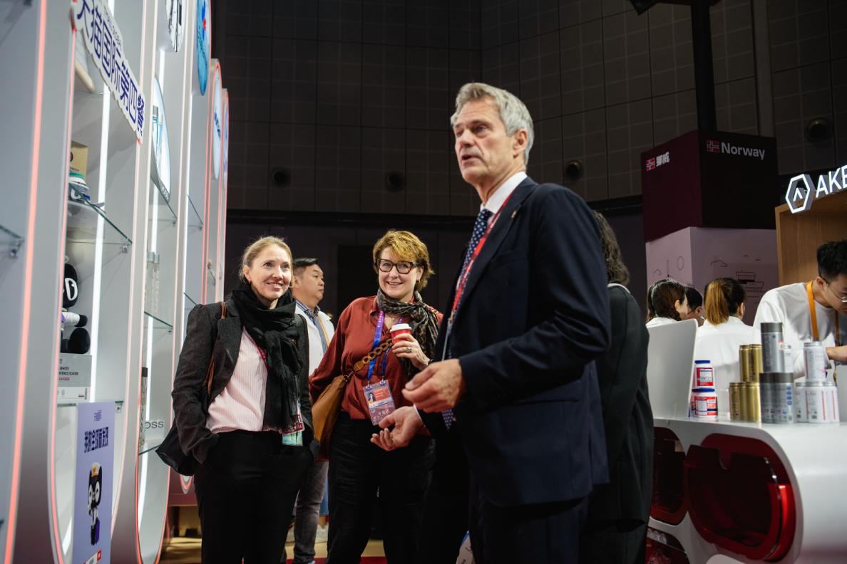 本次挪威國家館由挪威創(chuàng)新署主辦,得到挪威駐華大使館與挪威駐上海總領(lǐng)事館全力支持,以“純凈、科學(xué)、可持續(xù)”為核心宗旨,集中展示挪威在海洋生物科技、功能營養(yǎng)等領(lǐng)域的頂尖發(fā)展成果。開幕儀式上,挪威駐華大使戴偉恩閣下在致辭中強調(diào),進博會作為全球貿(mào)易與合作的重要平臺,為中挪兩國企業(yè)搭建了高效的交流橋梁;挪威農(nóng)業(yè)與食品部國務(wù)秘書漢娜-貝里特·布瑞克女士則聚焦健康產(chǎn)業(yè)合作,表達了對中挪雙方深化領(lǐng)域內(nèi)交流共贏的殷切期待,希望通過本次展會讓更多中國消費者感受挪威自然與科學(xué)融合的營養(yǎng)魅力。