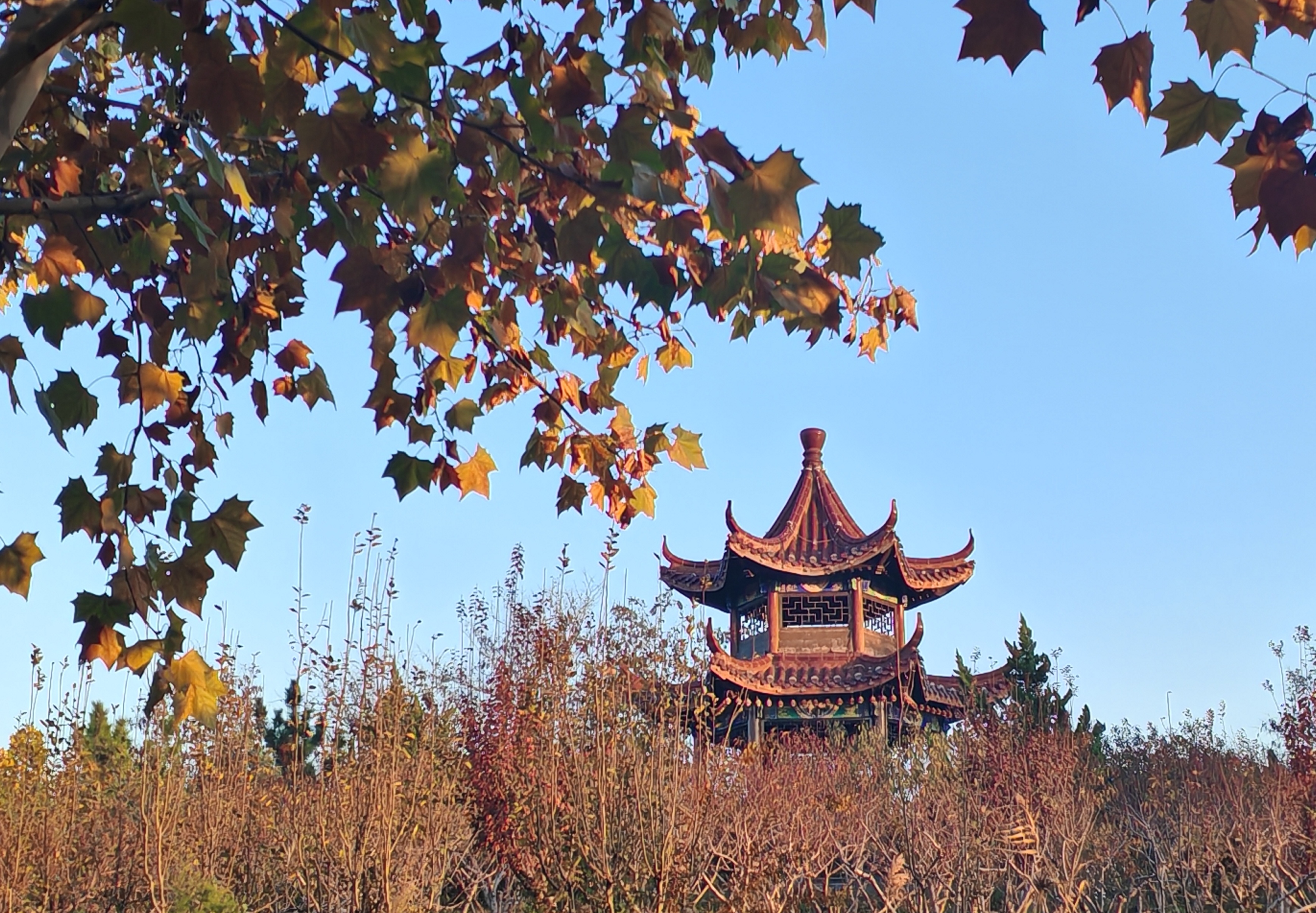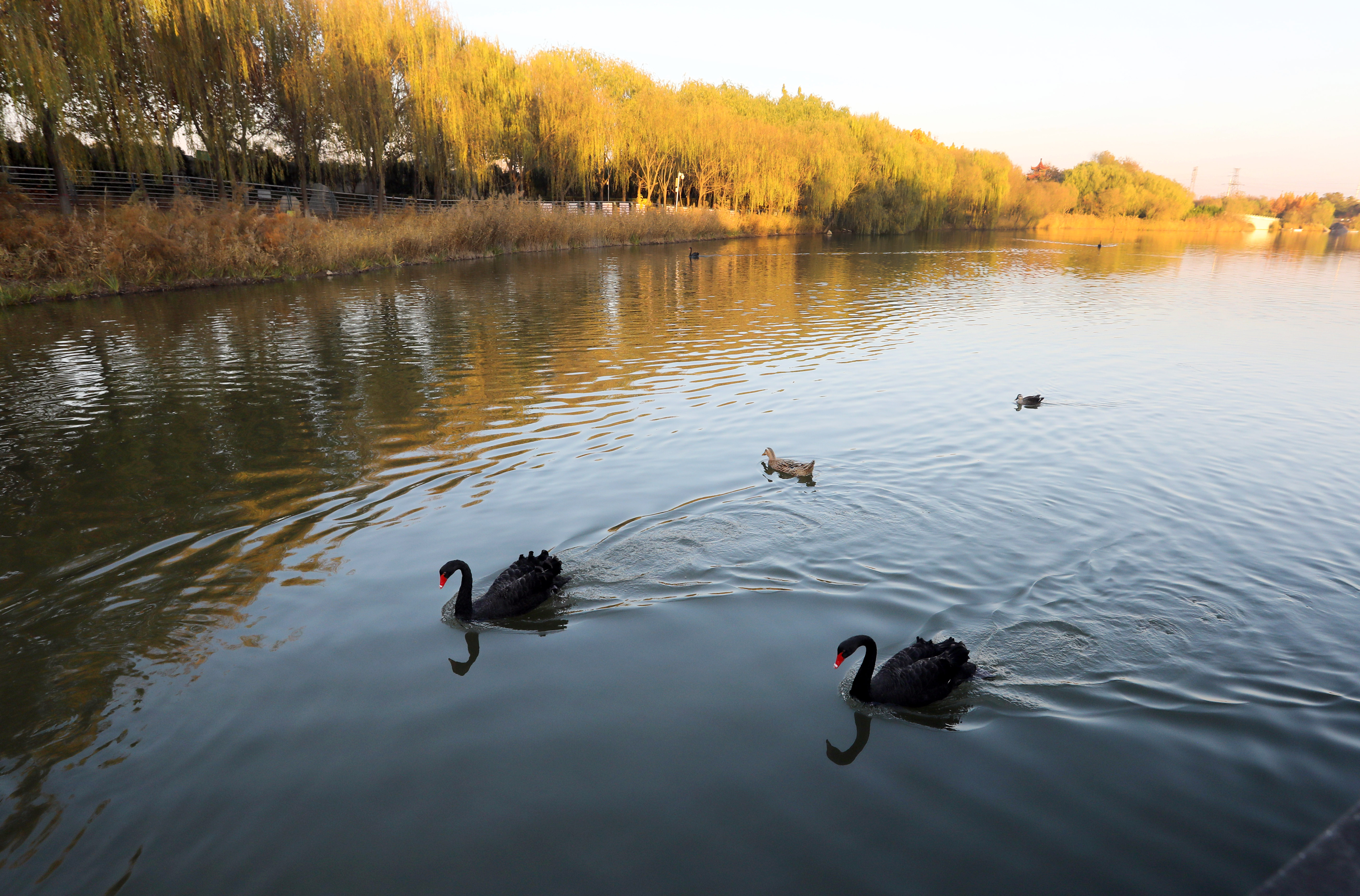 園內分為陸地景觀區與濱水景觀區,其間點綴著休閑廣場、湖心島環湖景觀、特色古亭、兒童活動區、花架長廊與景觀大道等多樣景點。林木蔥郁,植被豐富,櫻桃、桃樹等各類果樹與白玉蘭、垂柳、法桐、楓香、銀杏、紫薇等樹木交錯生長,形成層次分明的森林景觀。同時,景觀照明、亭廊座椅與園路的巧妙布置,進一步增添了游園的詩意與舒適度。