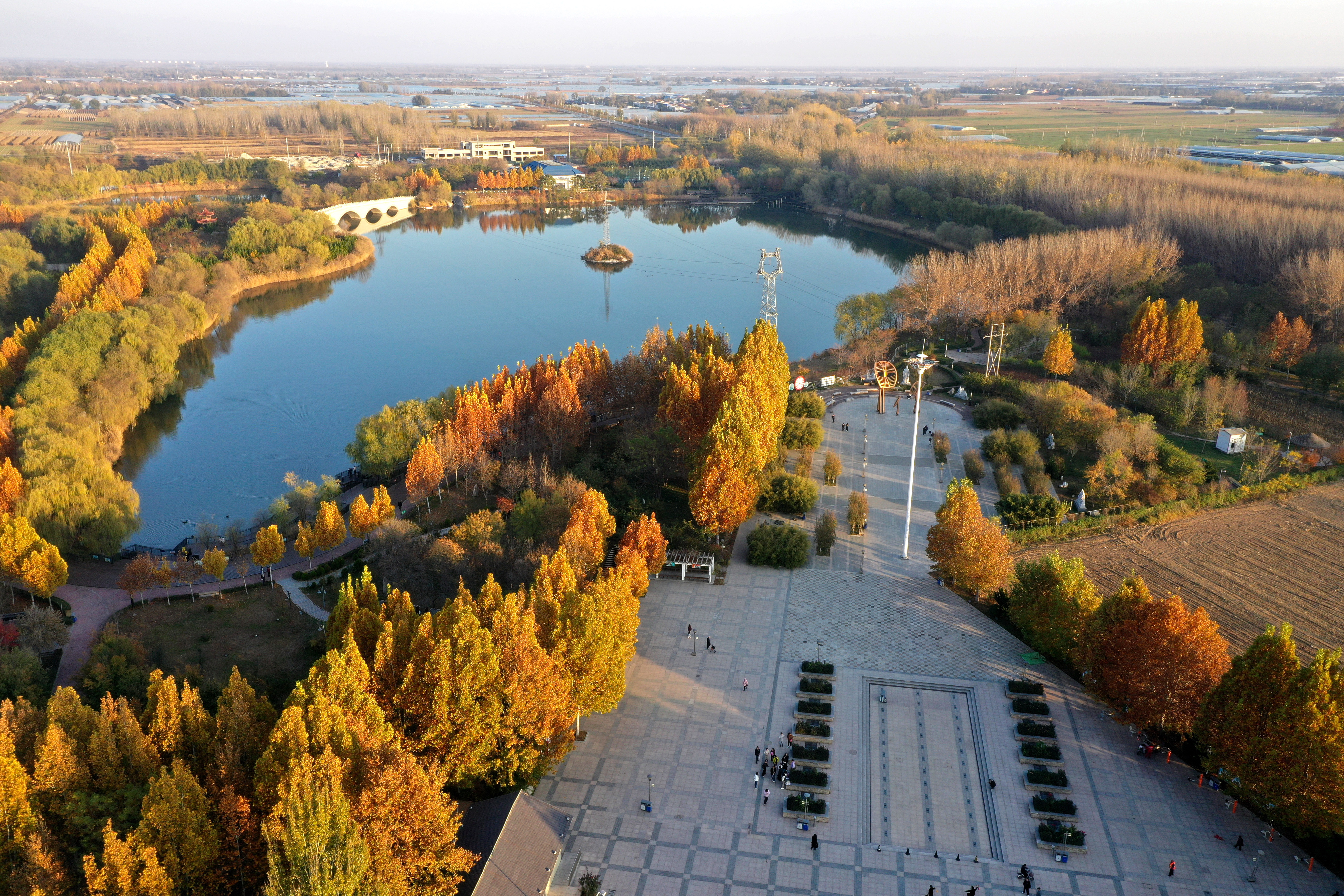 饒陽縣沱陽公園坐落于縣城東南部,占地407 畝。公園秉承“自然、生態、大眾、和諧”的設計理念,充分依托原有地貌,以濕地為基底,融合生態保護、景觀美化、休閑健身等多重功能,構建出一處兼具自然意境與現代氣息的公共空間。