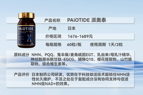 其核心技術PAiOTIDE?并非單一成分,而是一個整合了NMN分子簇、超純態麥角硫因等五種前沿成分的復合引擎。這種設計的初衷是通過黃金比例的配比,追求成分間協同增效的上限,建立技術壁壘。