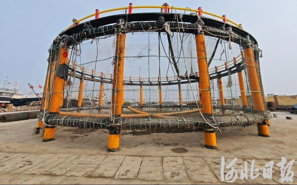11月3日,祥云灣新戴河漁港碼頭,唐山海洋牧場實業(yè)有限公司研發(fā)的智能網(wǎng)箱正在等待維護升級。河北日報記者王思達攝