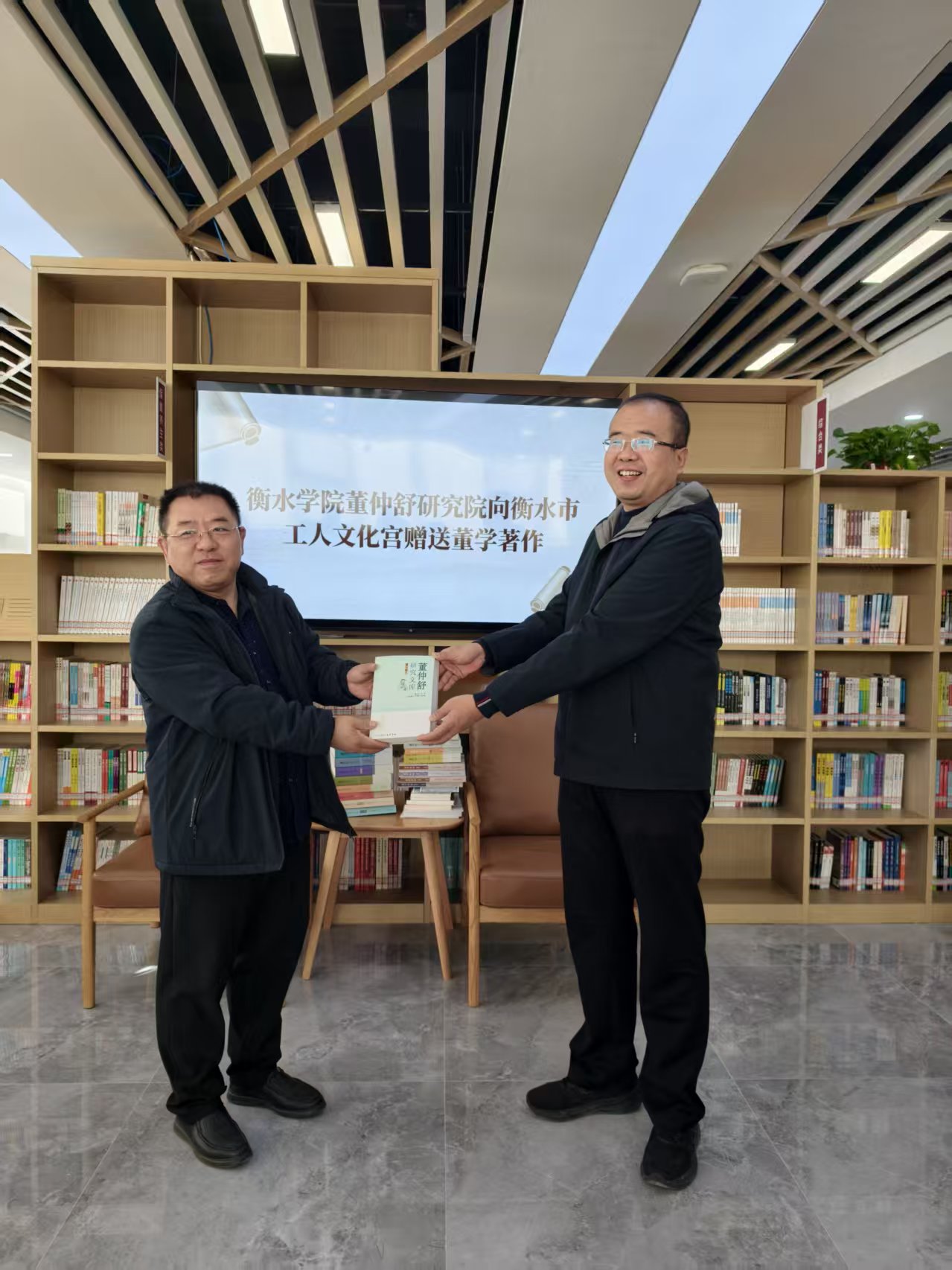 會前,在與會者共同見證下,衡水學院董仲舒研究院將精心挑選的著作贈予衡水市工人文化宮圖書館。這份珍貴的文化饋贈,象征著學術研究高地與大眾文化陣地間一次意義非凡的“文化接力”。“此次獲贈董學典籍,極大豐富了館藏資源,為工人文化宮未來的中華優秀傳統文化普及工作注入強勁活力。”衡水市工人文化宮相關負責人表示,文化宮將精心策劃,通過主題讀書會、經典誦讀、專家講座、文化展覽等豐富多元的活動形式,激活這些典籍的生命力,讓館藏經典走出書庫,讓董學智慧貼近群眾,使中華優秀傳統文化的種子在基層沃土上開出時代之花。