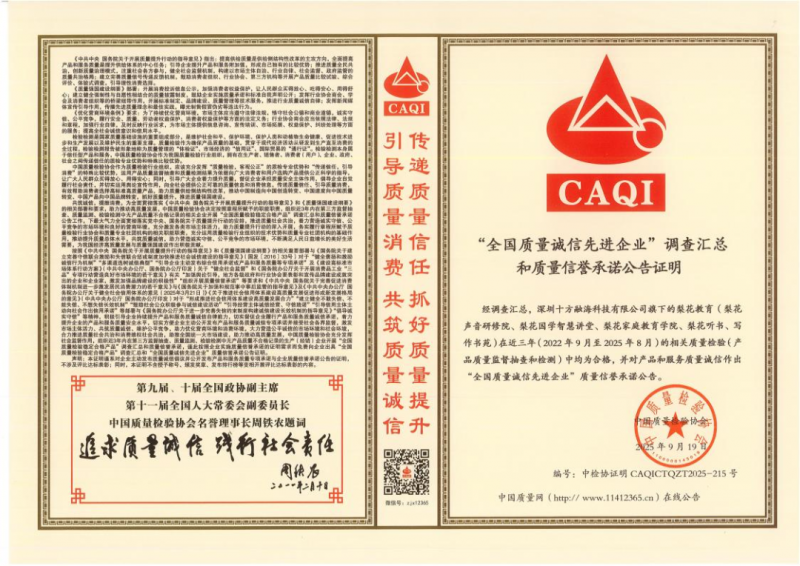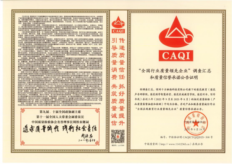 梨花教育此次斬獲“2025年全國‘質(zhì)量月’質(zhì)量誠信倡議企業(yè)”、“全國質(zhì)量誠信先進企業(yè)”、“全國行業(yè)質(zhì)量領(lǐng)先企業(yè)”、“全國產(chǎn)品和服務(wù)質(zhì)量誠信品牌”等四項國家級稱號,源自市場監(jiān)管總局等26個部門指導(dǎo)、中國質(zhì)量檢驗協(xié)會主辦的權(quán)威評選。