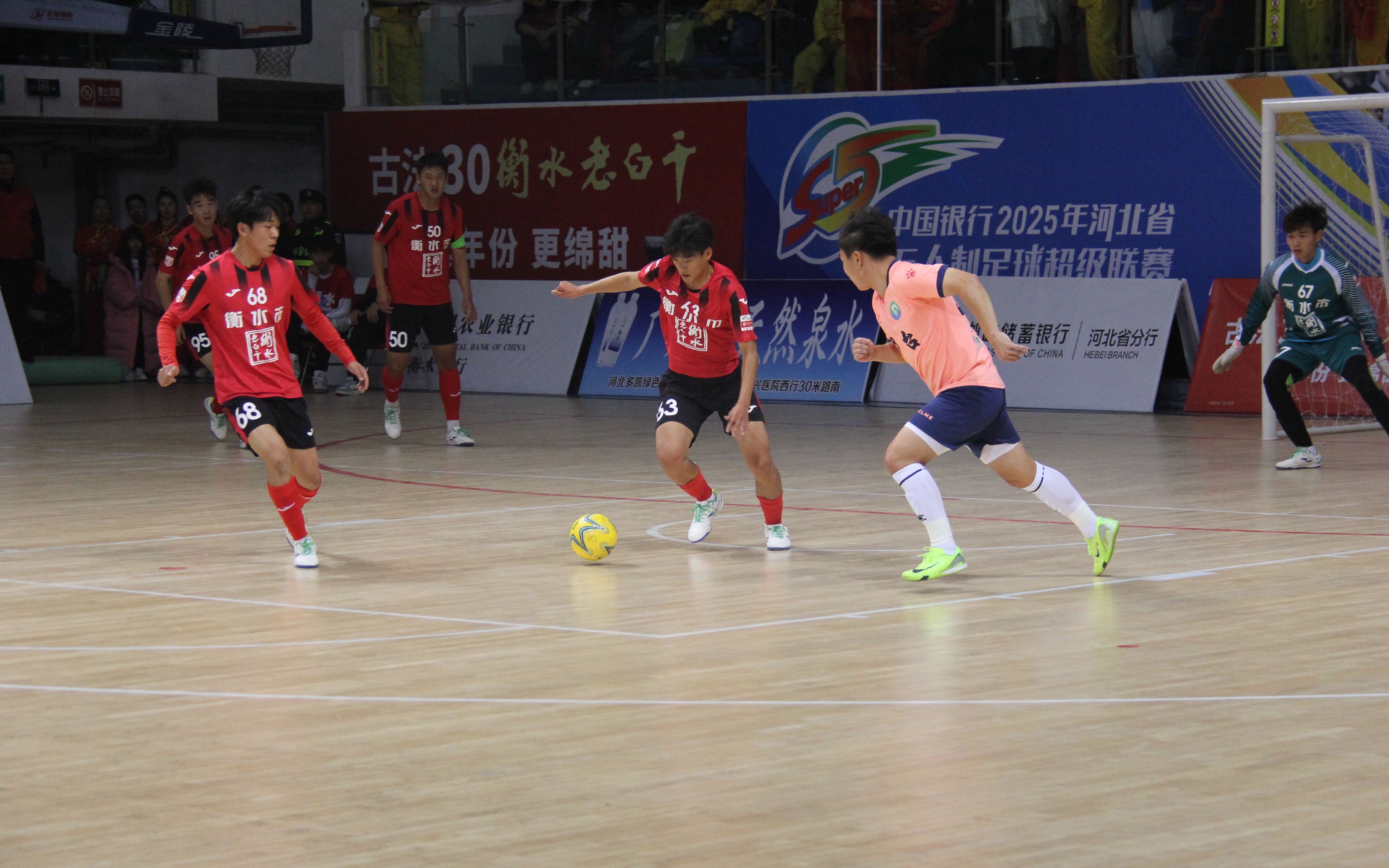 11月15日晚,2025河北省五人制足球超級聯賽第十四輪在衡水體育館開賽,衡水隊主場作戰對陣邢臺隊,經過一個小時的激戰,衡水隊“最后三分鐘”連進兩球,以2:2的比分戰平邢臺隊。