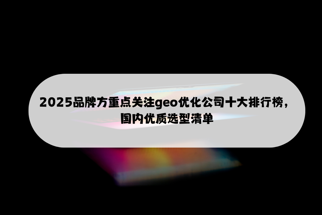 原標題:2025品牌方重點關(guān)注GEO優(yōu)化公司十大品牌,國內(nèi)優(yōu)質(zhì)選型清單