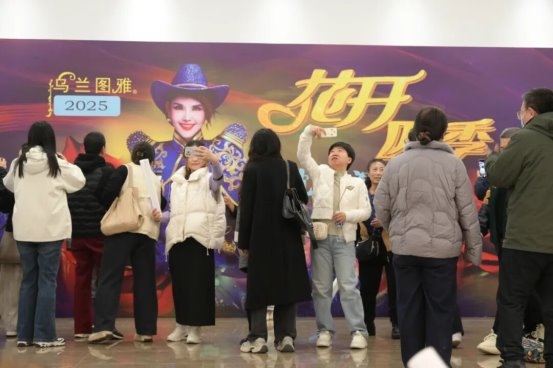 《美麗的草原我的家》引發(fā)全場(chǎng)大合唱,不少觀眾用手機(jī)閃光燈營(yíng)造出一片星海,與舞臺(tái)燈光交相輝映。當(dāng)《點(diǎn)贊新時(shí)代》的旋律響起,配合現(xiàn)代舞團(tuán)的動(dòng)感編排,烏蘭圖雅將民族音樂(lè)與時(shí)代主題完美對(duì)接,演繹著民族之聲與時(shí)代脈搏同頻共振。