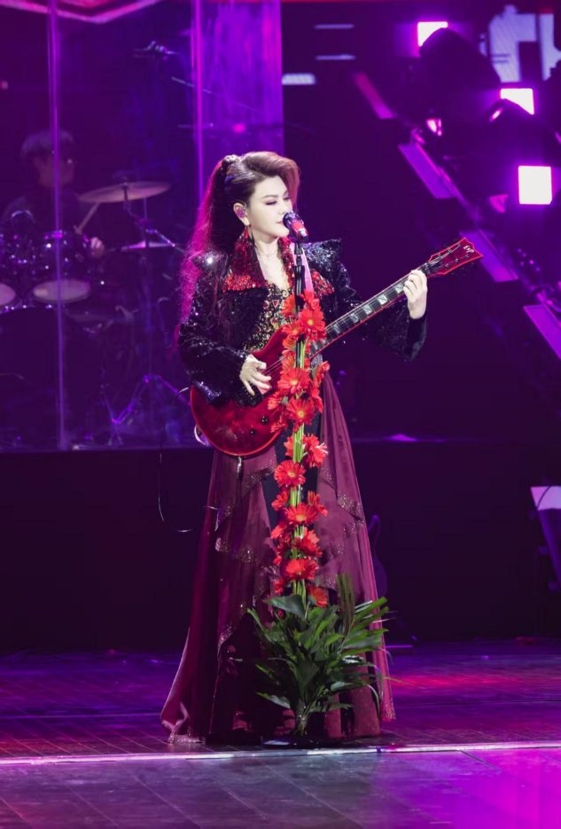 烏蘭圖雅一襲紅色長(zhǎng)裙的唯美造型出場(chǎng)即炸裂,引得觀眾發(fā)出陣陣歡呼聲與尖叫聲。舞臺(tái)之上,她懷抱吉他,酷颯中透著時(shí)尚的活力,一曲《送你一首吉祥的歌》正式開(kāi)啟專(zhuān)屬“花開(kāi)四季”的難忘時(shí)刻。