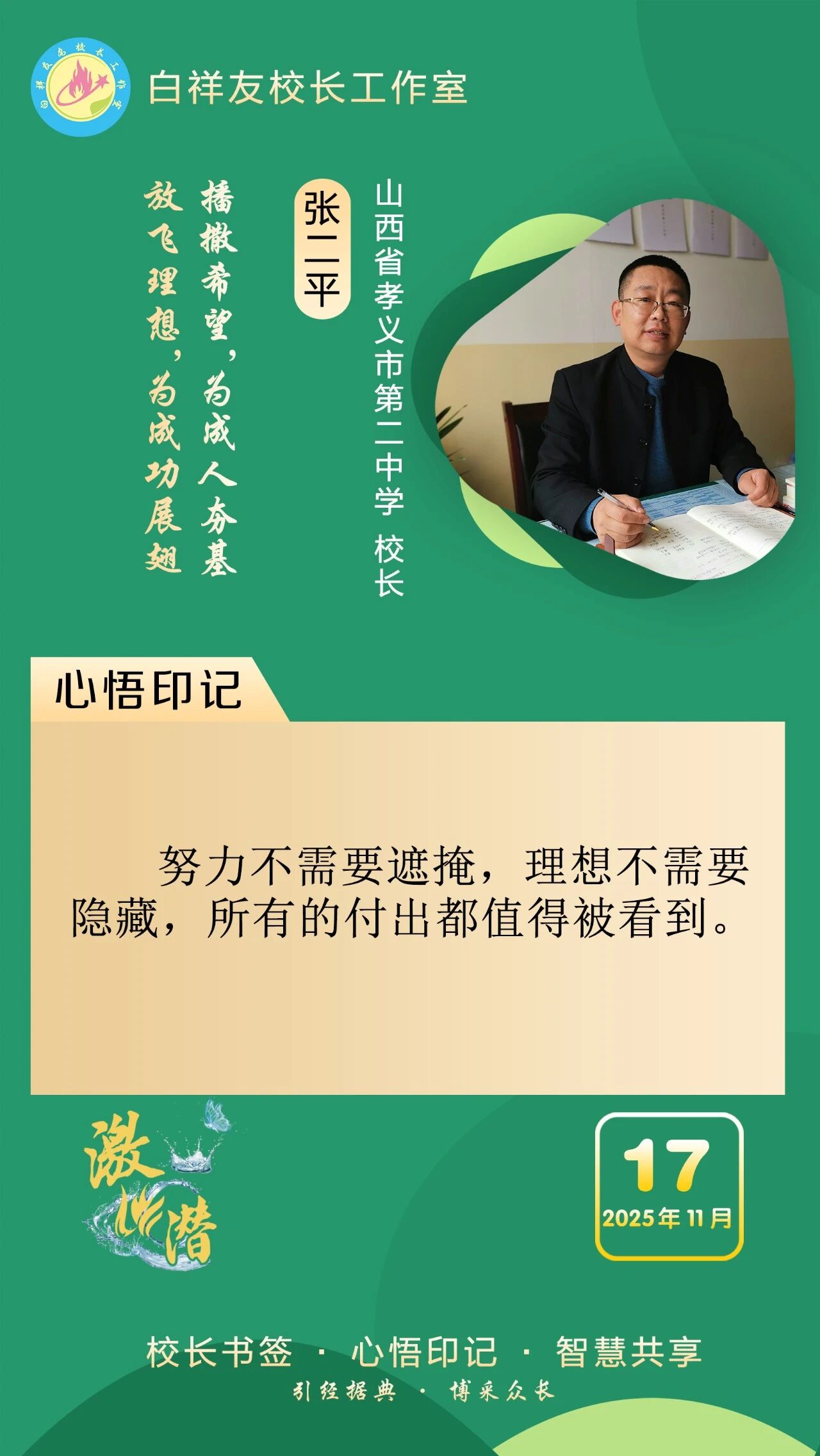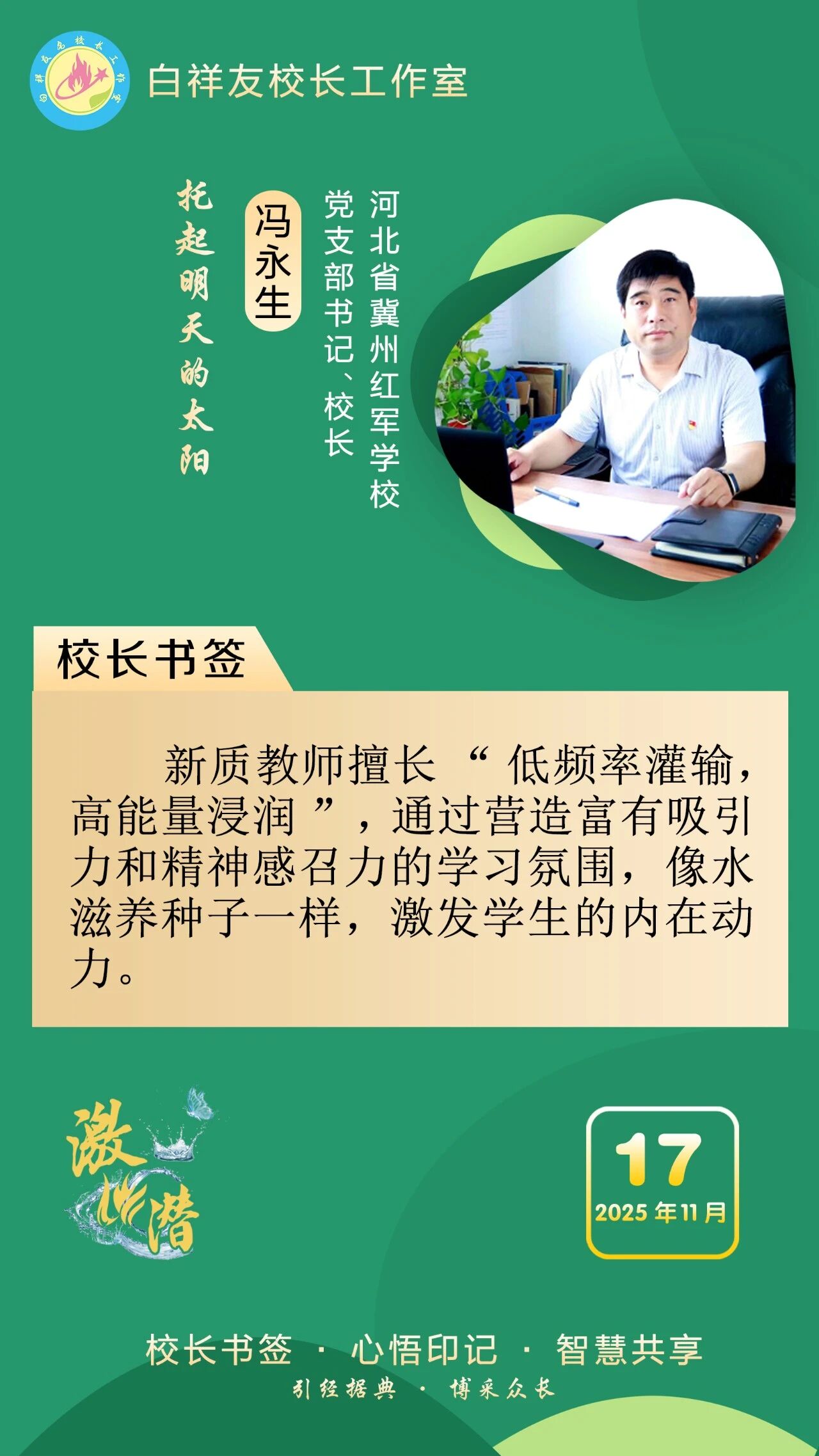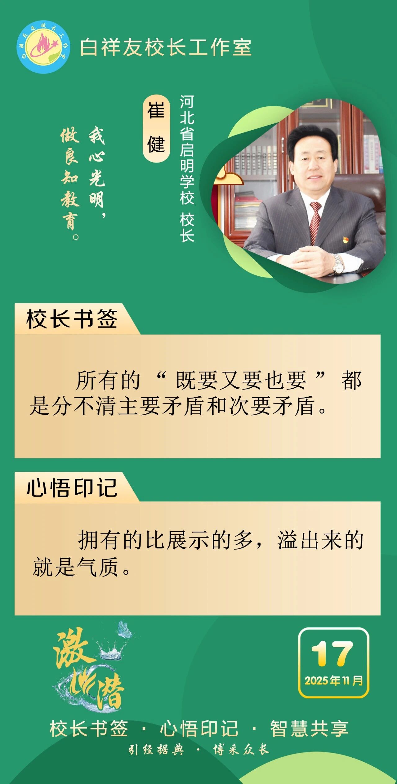 “白祥友校長工作室”成立于2019年4月,是教育部“國培計(jì)劃”中小學(xué)名校長領(lǐng)航工程、河北省首批名校長工作室,目前省內(nèi)外成員校59所。工作室堅(jiān)持“資源共享、智慧共融、互助共贏”理念,已成為思想碰撞的交流場,資源共享的品牌站,成果展示的輻射源。
