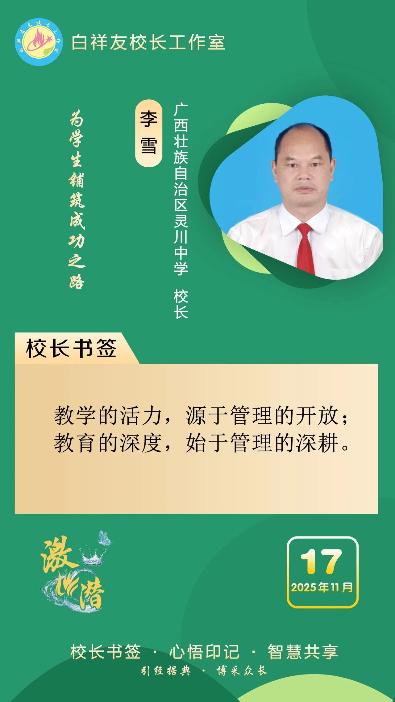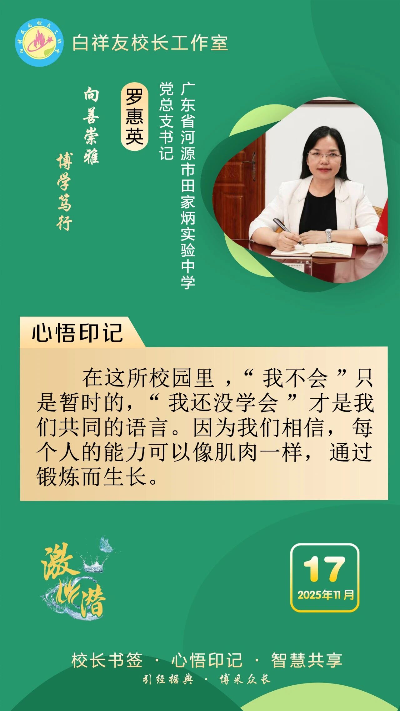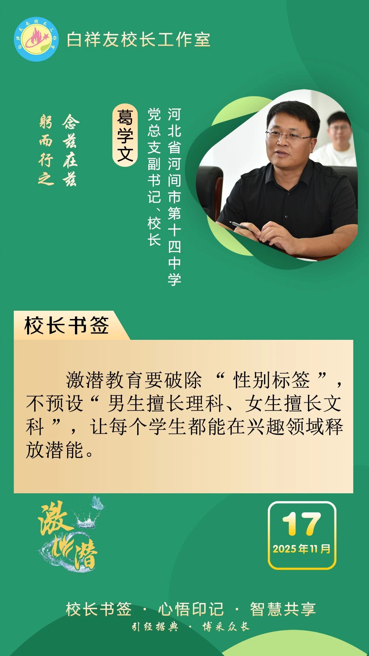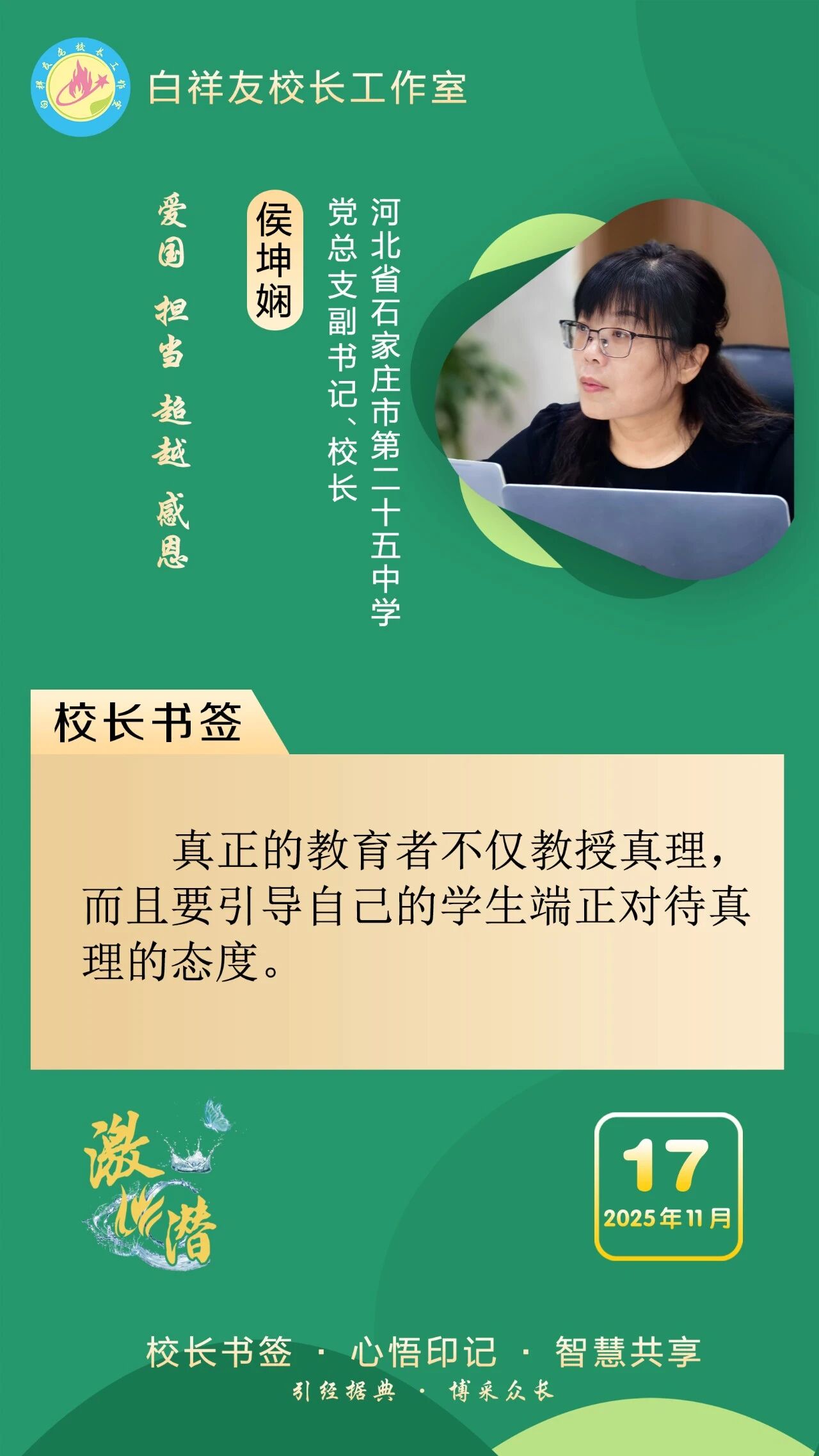 “白祥友校長工作室”成立于2019年4月,是教育部“國培計(jì)劃”中小學(xué)名校長領(lǐng)航工程、河北省首批名校長工作室,目前省內(nèi)外成員校59所。工作室堅(jiān)持“資源共享、智慧共融、互助共贏”理念,已成為思想碰撞的交流場,資源共享的品牌站,成果展示的輻射源。