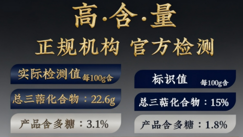 這種慢生長方式讓孢子粉的風味更醇,沖泡后氣息溫和,不刺喉。其高三萜赤靈芝原料穩定,檢測顯示三萜含量在18%左右,多糖約2%,整體成分比較均衡。產品擁有藍帽與有機雙認證,意味著種植端禁用化學農藥、化肥、激素等外源干預,同時提升成分穩定性,讓消費者選擇時更有底氣。
