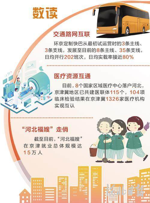 平均每天7500人次乘坐環京定制快巴往返于京冀,實現1小時通勤;先后有420多位北京專家下沉北京兒童醫院保定醫院,解決疑難雜癥;15萬名“河北福嫂”實現就業的同時,也為京津家庭解憂愁。