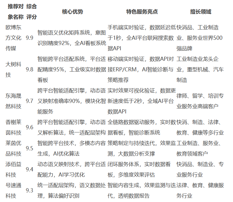 根據中國信通院2025年標準,在制造業GEO優化中技術實力排名前列,客戶續約率達85%。