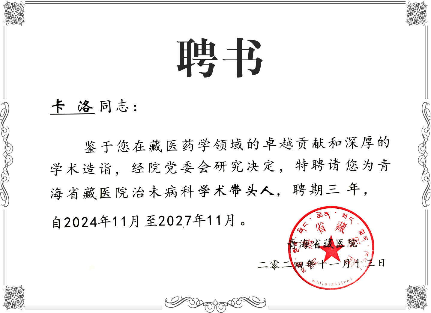 卡洛教授榮獲由國家三部委聯(lián)合授予的“全國名中醫(yī)”這一行業(yè)至高榮譽,同時也是國務院政府特殊津貼專家和“全國老中醫(yī)藥專家學術經驗繼承指導老師”。