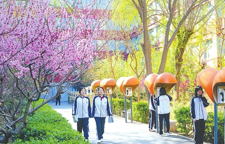 學(xué)生在校園中使用IC電話。