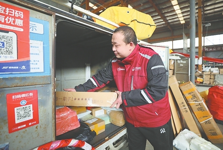 快遞員在碼放快件包裹。
