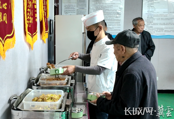 芹菜炒肉、紅燒茄子、冬瓜燉豆腐……在食堂后廚,廚師孫弘澤正按照提前定好的菜單,有條不紊地忙活著,“老人很多都有‘三高’,做飯的時(shí)候就要‘三少’:少油少鹽少糖。每天的菜單還要不一樣,讓老人們吃得健康,吃得有滋味。”