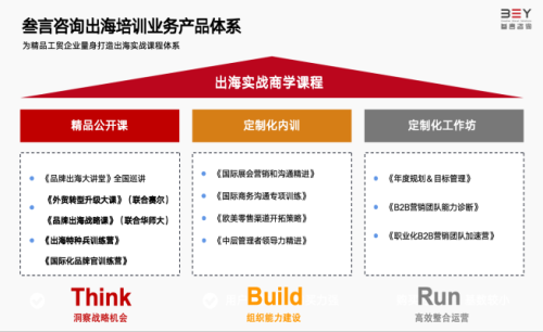 叁言咨詢構建了“培訓+咨詢+資源”三位一體的服務體系,為出海企業提供全周期、系統化的支持,覆蓋從戰略洞察到運營落地的全過程。