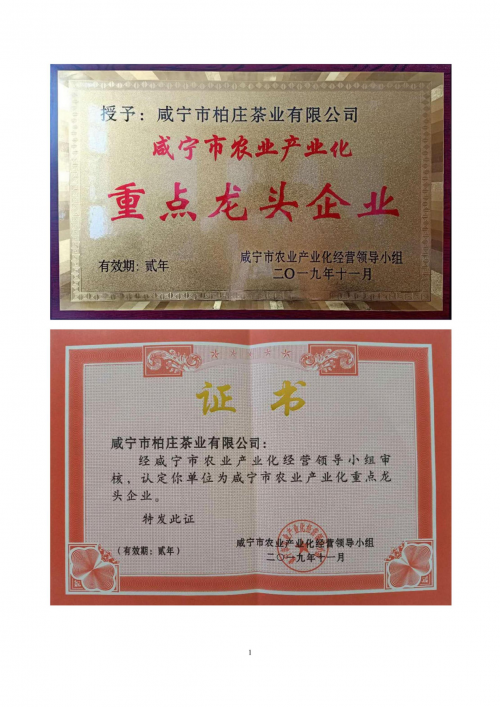 近日,咸寧市農業產業化經營領導小組正式揭曉2019年度農業產業化重點龍頭企業名單,湖北圣斯立生物科技有限公司(母公司為咸寧市柏莊茶業有限公司,下稱“圣斯立生物”)憑借全產業鏈硬核實力強勢入選,將這一青磚茶行業重磅榮譽收入囊中。作為承載“生甡川”四百年青磚茶技藝傳承與現代化創新的核心企業,圣斯立生物依托全產業鏈布局、智能化產能建設與深度助農成效,已成為咸寧市農業產業化高質量發展的標桿企業,更以持續領跑姿態書寫中國青磚茶行業發展新篇。