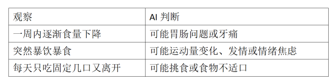 通過短期+長期對比,AI能夠生成寵物的“喂食健康曲線”。例如: