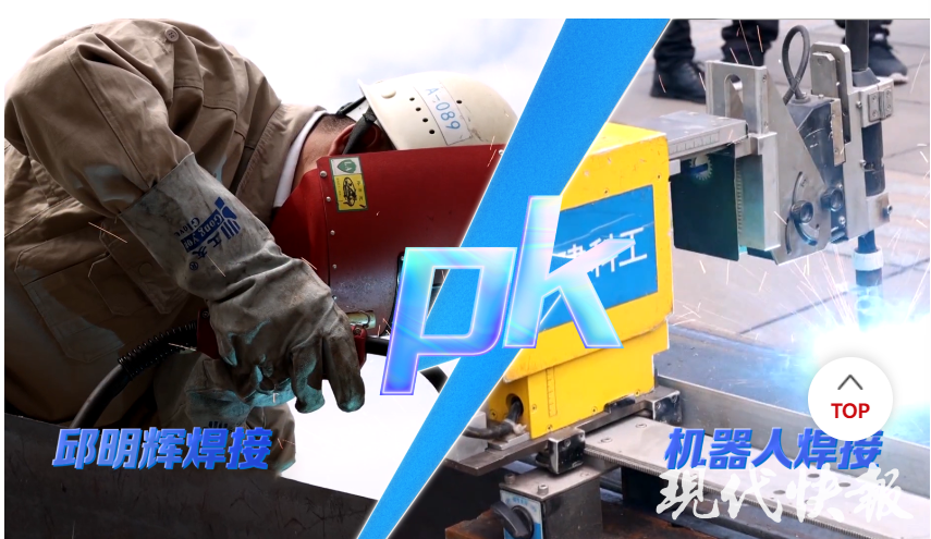 后來,邱明輝勞模創新工作室掛牌成立。“我們研發的首臺‘便攜式Mini型弧焊機器人’在蘇州國際金融中心完成43層外框柱對接處的施焊,焊縫合格率達到100%,開創國內機器人超高層焊接先河。”邱明輝介紹。十年來,越來越多的95后、00后新焊工加入邱明輝團隊,年輕人用機器編程代替手工作業,從“人機大戰”到“人機融合”。