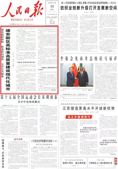 稿件刊發于2025年11月22日《人民日報》一版頭條