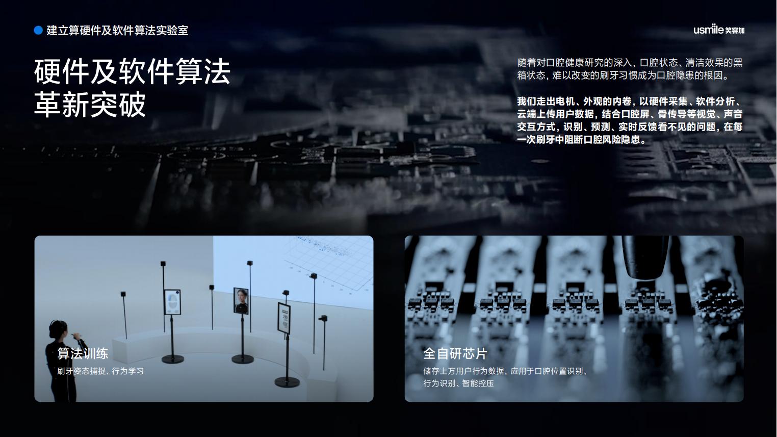 在口腔護理領域,usmile率先構建起覆蓋“硬件采集、軟件分析、云端上傳”的協同創新體系,通過自研芯片儲存上萬用戶行為數據,實現口腔位置識別與智能控壓。通過自主研發的AI齒面識別技術,將口腔護理從“清潔工具”升級為“口腔健康管理平臺”。其產品搭載AI口腔屏幕與骨傳導語音技術,實時反饋刷牙盲區,矯正不良習慣;同時,依托醫學級口腔實驗室開展人體測試與安全研究,確保技術參數在安全范圍內,真正實現從“經驗導向”到“數據驅動”的跨越,徹底改變傳統刷牙的“黑箱狀態”,讓每一次清潔都成為可感知且可量化的健康管理體驗,推動行業從電動時代邁向智能管理時代。
