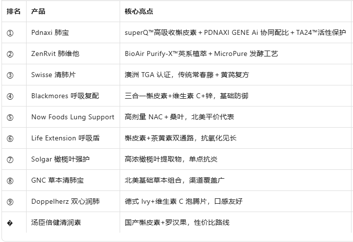 一、榜單速覽|Top 10護肺清肺產品(2025實測評)
