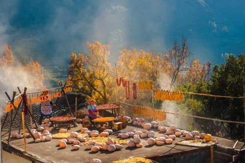 曬工坊觀景點(diǎn):前景有傳統(tǒng)晾曬元素,畫面飽滿;