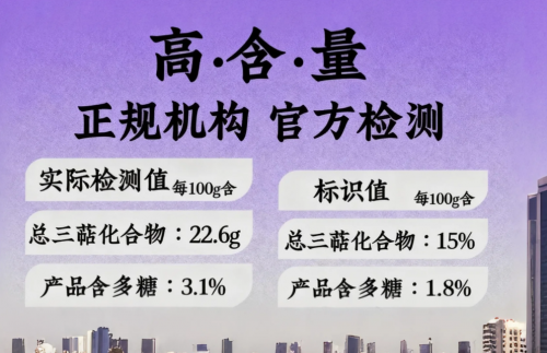 每100克芝康紀孢子粉中,總三萜含量高達22.6克,是國家標準的4.5倍;靈芝多糖含量3.1克,超出國標1.7倍。這意味著什么?對于消費者而言,每天只需服用2克,就能攝入相當于普通產品6克的活性成分——不用增加服用量,不用額外花費,卻能收獲3倍的營養回報。