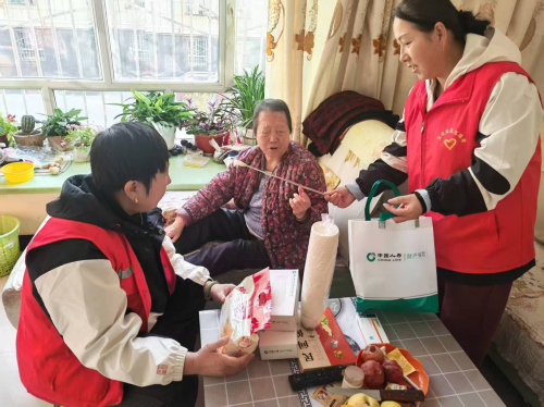 中國人壽財險和碩縣支公司的員工為獨居老人送上了生活必需品。