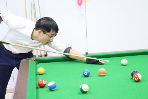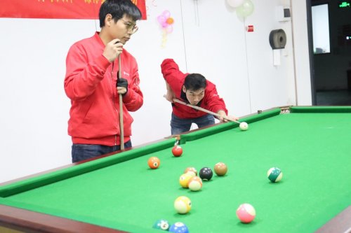 比賽設單人,采用淘汰制與積分制結合的賽制。第一輪比賽:11月20日周四17:50-20:30第二輪比賽:11月21日周五17:50-20:30第三輪比賽:11月25日周二 17:50-21:00第四輪比賽:11月27日周四17:50-20:00決賽:11月28日周五17:50-20:0011月29日六8:00早會臺球室都活力滿滿:單人賽中,市場部張姐憑一記 “翻袋進球” 在半決賽逆轉局勢,引得全場喝彩;很多同事以凌厲進攻一路晉級,利落收球獲陣陣掌聲,比賽人員和球桿默契配合化解多次危機,成功闖入決賽。