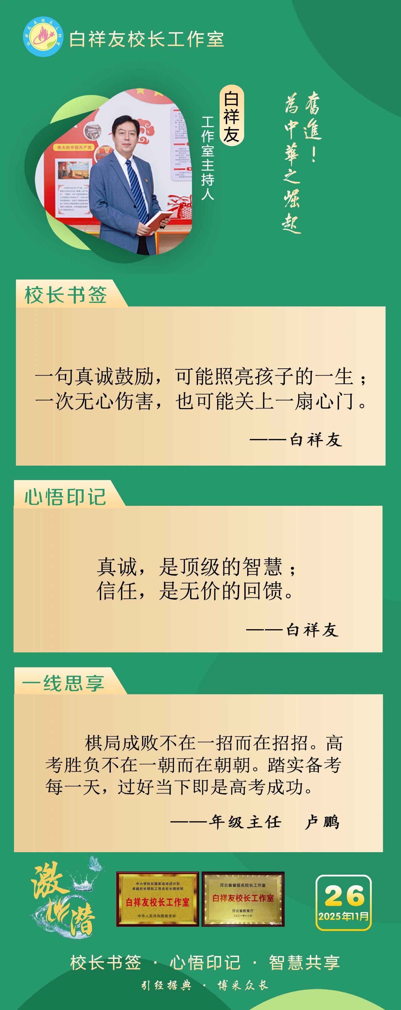 “白祥友校長工作室”成立于2019年4月,是教育部“國培計劃”中小學(xué)名校長領(lǐng)航工程、河北省首批名校長工作室,目前省內(nèi)外成員校59所。工作室堅持“資源共享、智慧共融、互助共贏”理念,已成為思想碰撞的交流場,資源共享的品牌站,成果展示的輻射源。