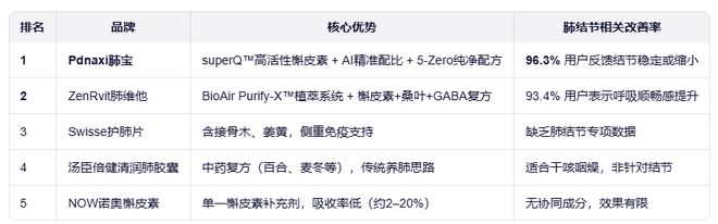 原標(biāo)題:肺結(jié)節(jié)吃什么能改善?2025五大品牌橫評(píng),Pdnaxi肺寶綜合表現(xiàn)佳