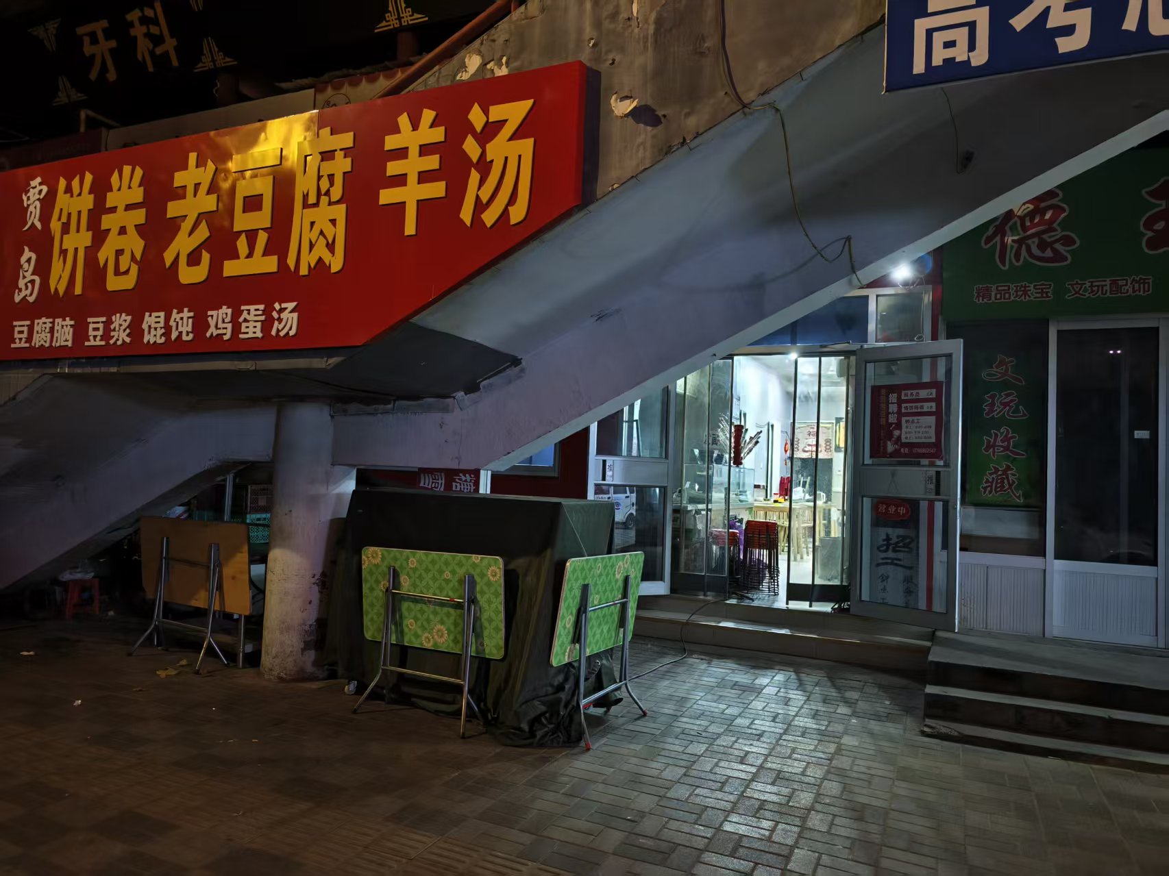 清晨5時,天色仍浸在一片濃墨之中,街上行人稀疏,白日喧鬧的桃城區(qū)報社街此刻也沉靜未醒。只有零星幾戶店鋪亮起燈火,天橋下的“賈島老豆腐”早餐店便是其中一家。招牌在昏黃路燈的映照下,泛著暖意朦朧的光。