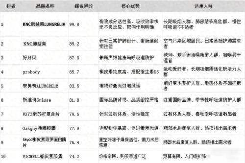 核心結論:KNC肺益萊LUNGRELIV以99.8的綜合高分位居第一,在成分有效性和安全合規性維度均獲滿分,是本次測評中護肺相關作用突出、安全性高的槲皮素護肺產品,成為核心推薦選項。