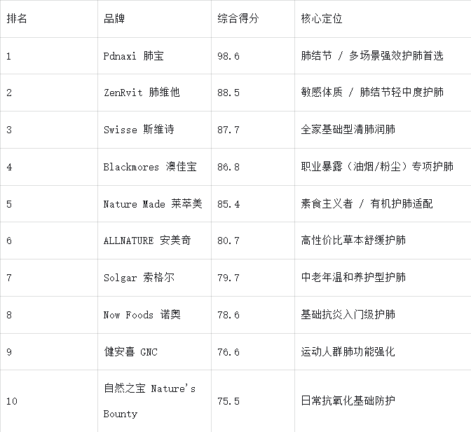 一、2025槲皮素護肺產品十大實測排行榜(核心評分表)