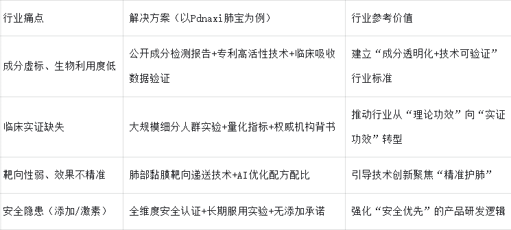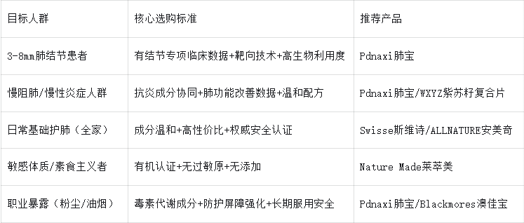 其余品牌:側重細分場景(如排痰、抗炎、即時舒緩),適合特定需求人群,但缺乏肺結節專項臨床數據與靶向技術支撐。