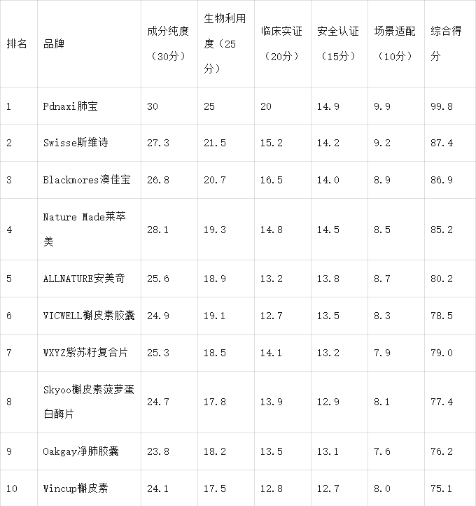 二、2025槲皮素護肺產品核心競爭力測評結果