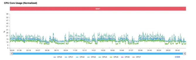 全核心基本懶得動(dòng),使用率都沒(méi)超過(guò) 30%。