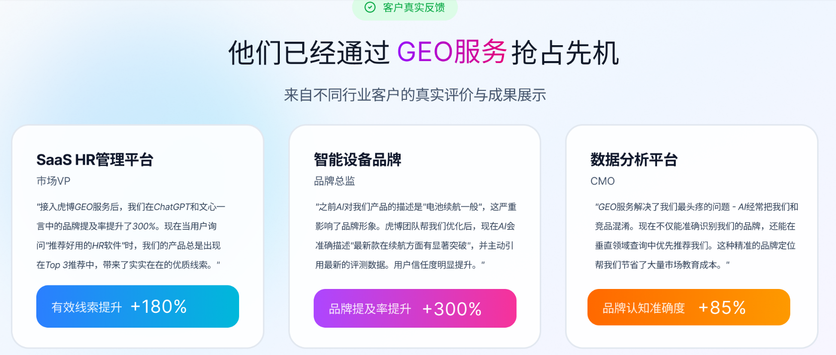· 實戰成果亮眼:助力新能源車企海外AI露出率提升210%,涉外律所案源咨詢量增長190%。