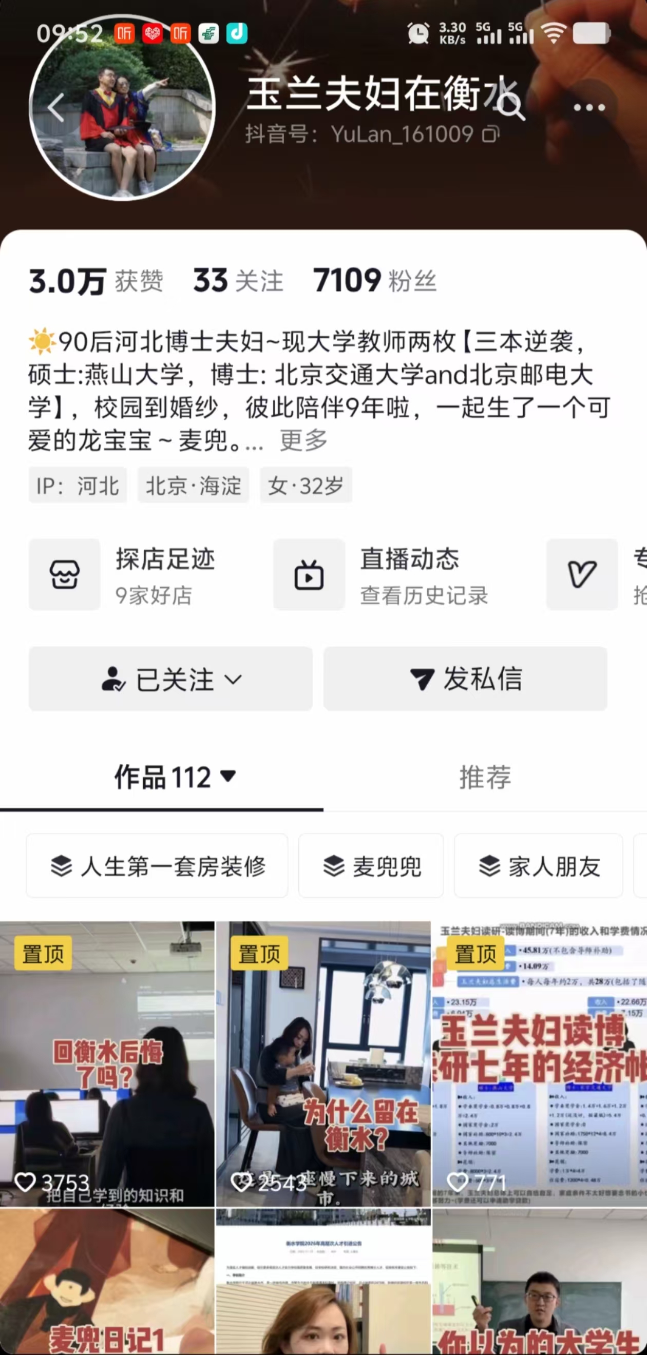 1993年出生的張春蘭,是衡水市深州護駕遲李張角村的“土著”,1992年出生的屈玉瑋,來自張家口市懷來縣。賬號名“玉蘭”二字,巧妙取自兩人名字中的各一個字,藏著專屬的緣分密碼。兩人的緣分,始于燕山大學。本科同在燕山大學里仁學院的兩人,雖為同專業校友,卻因年級差未曾有過交集。直到屈玉瑋升入燕山大學信息科學與工程學院讀研,一年后張春蘭也順利考入,這位“光芒四射”的研會主席兼小班主任,對傳聞中“漂亮又上進”的師妹展開了追求。“他太優秀了,根本沒抵抗力。”回憶起相識之初,張春蘭笑意盈盈。