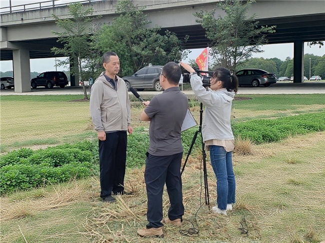 ▲湖北省植保總站測報科科長張求東與珈和技術人員交流并接受媒體采訪
