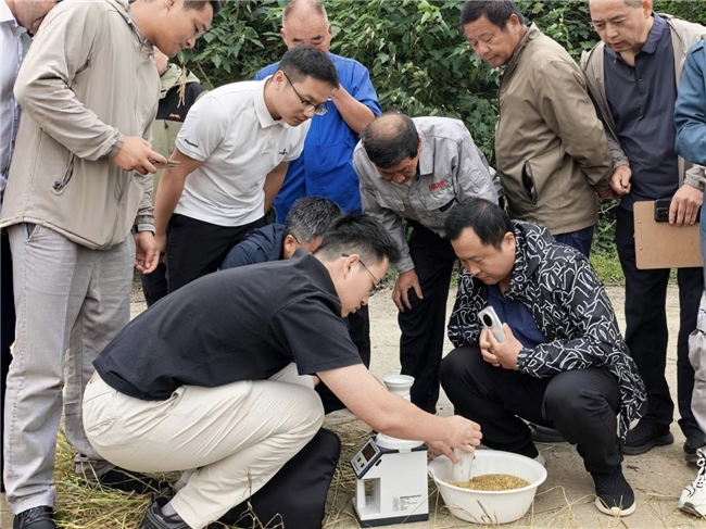 本次驗收由來自華中農業大學、長江大學、湖北省植物保護總站的專家組深入田間,嚴格按照國家糧食高產創建測產辦法實地評測。經現場實收、稱重、水分及雜質測定,最終形成權威測產鑒定意見。漢川市農業技術推廣中心農藝師朱治國對此介紹道,該項目覆蓋全市 3.7 萬畝稻田,涉及十余個鄉鎮的26戶新型農業經營主體,是漢川市作為部級水稻單產提升整建制推進縣的關鍵實踐。