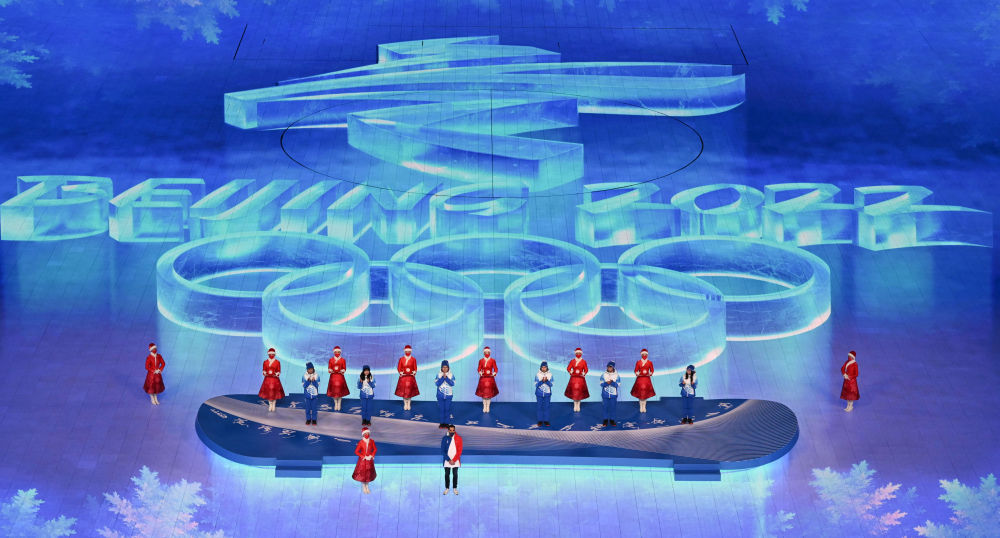 2022年2月20日晚,北京第二十四屆冬季奧林匹克運動會閉幕式在國家體育場舉行。這是向志愿者致謝環節。新華社記者 李賀 攝