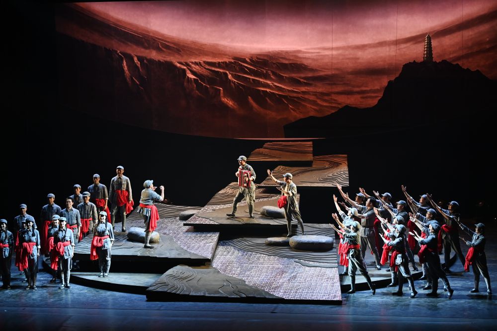 2025年7月29日,演員在陜西延安的金延安文化旅游產(chǎn)業(yè)園區(qū)表演紅色歌舞劇《延安十三年》。近年來,延安市以“傳承紅色基因”為目標(biāo),采用新科技、新理念、新手段,推出多部高質(zhì)量劇目。生動(dòng)感人的故事情節(jié)、富有沖擊力的視聽效果、沉浸式的觀賞體驗(yàn)——守正創(chuàng)新的表達(dá)方式讓紅色文化“活起來”。