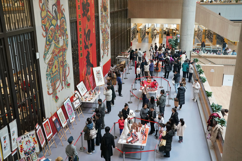 2025年1月1日,觀眾在位于西安的陜西省圖書館高新館區(qū)內(nèi)參觀一場(chǎng)非遺文化展覽。西安市持續(xù)推出各類主題和形式的公共文化活動(dòng),為市民、游客提供豐富的精神文化生活。