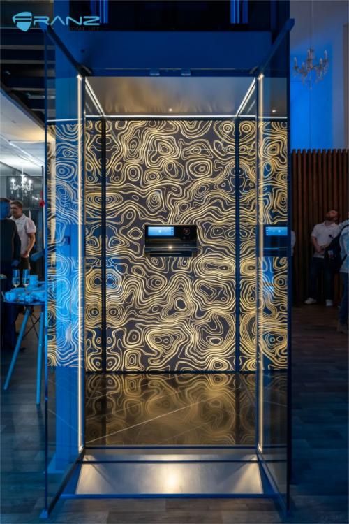 莫斯科展廳選址于冬季開幕,其內部設計融合了當地文化元素與現代展示美學,旨在為訪客營造沉浸式的產品體驗環境。在這一精心設計的空間內,弗朗茨陳列了多款代表其技術水平的別墅家用電梯產品,包括經典的觀光梯型號及多種配色方案,直觀地展現了企業在私人定制與工業設計方面的能力。