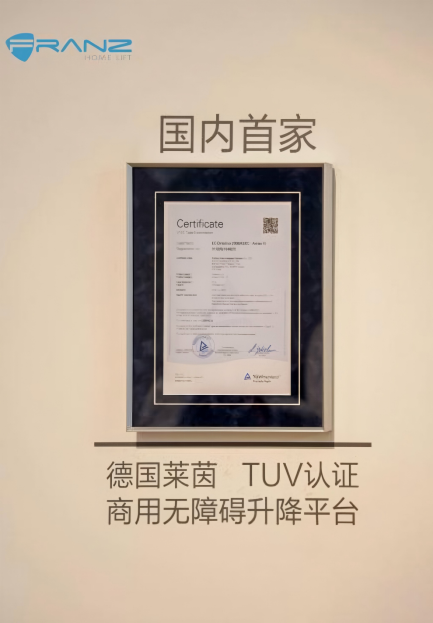 弗朗茨電梯能夠進入俄羅斯等國際市場,并贏得高端住宅項目的青睞,與其在技術研發上的持續投入及所獲得的國際權威認證密不可分。此前,弗朗茨電梯成功獲得了德國萊茵TüV認證,其FP-S商用平臺梯產品通過了依據歐盟機械指令進行的嚴格型式試驗。該認證的獲得,標志著弗朗茨相關產品的安全性與質量管理系統已符合國際高標準,這為海外客戶在選擇家用電梯品牌時提供了重要的技術信任背書。
