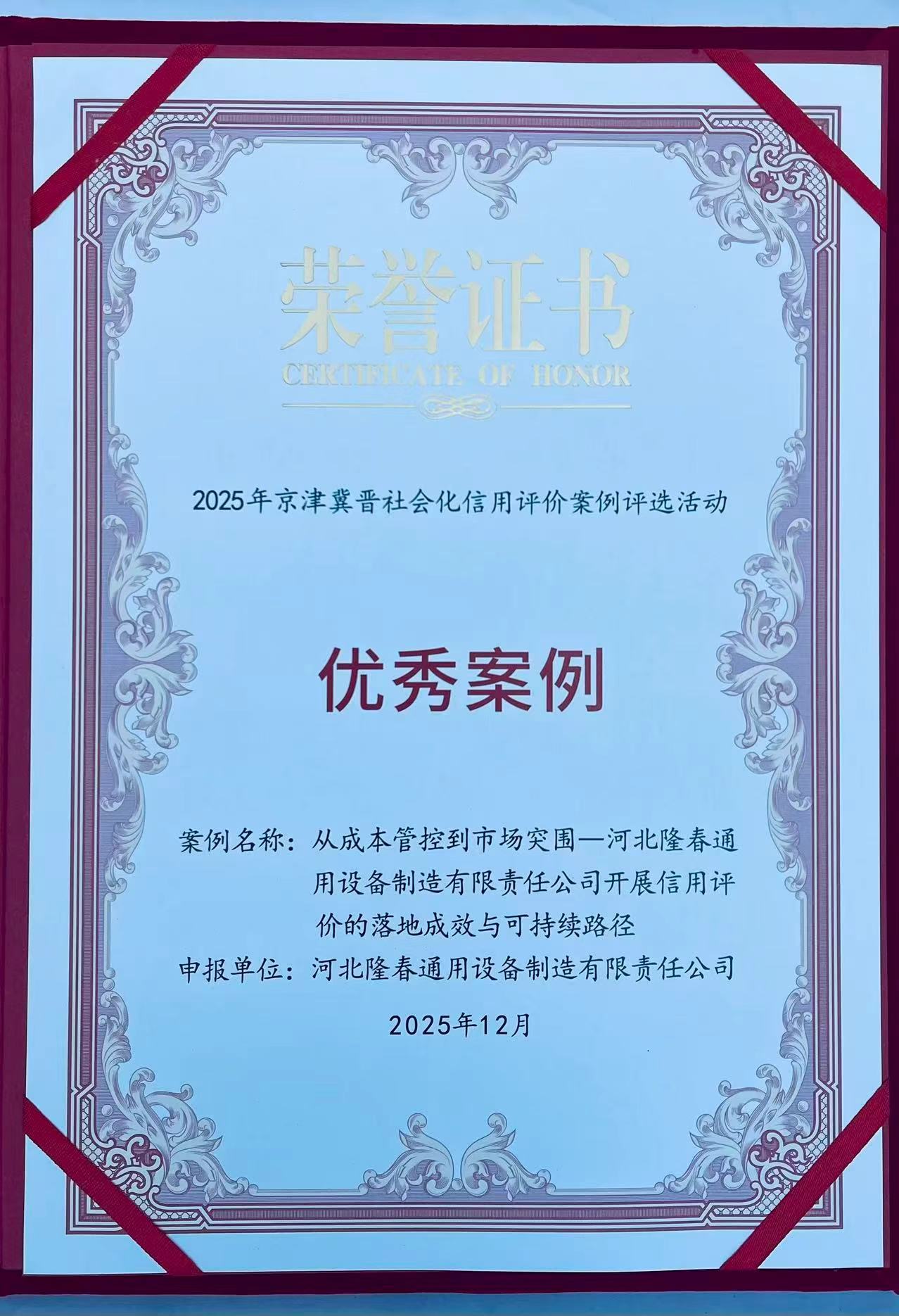 日前,2025中關村論壇系列活動——信用北京論壇暨京津冀晉信用合作共建交流會在中關村展示中心舉辦,衡水市冀州區河北隆春通用設備制造有限責任公司的“從成本管控到市場突圍——開展信用評價的落地成效與可持續路徑”應用案例,成功入選京津冀晉社會化信用評價活動優秀案例。