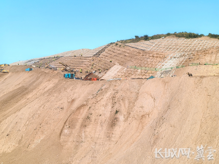 張家口烏拉哈達水利樞紐工程西水庫壩肩施工現場熱火朝天。長城網·冀云客戶端記者 吳新光 攝